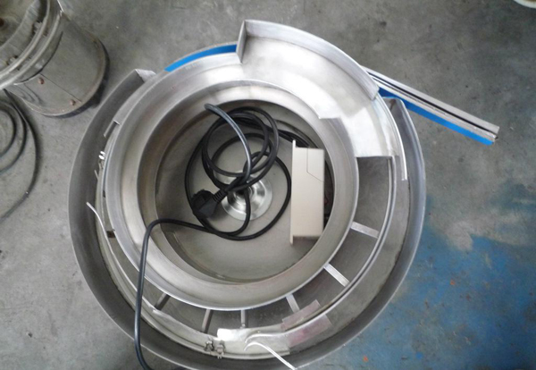 第三步、往振動盤里放工件,按照半徑的規(guī)格大小來放。如若放的零件沒有完全的遮住底盤,就需要盡快加料。